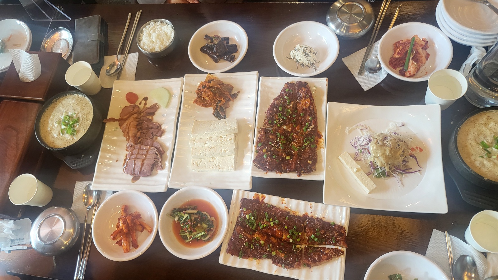 (전복버섯순두부들깨탕, 코다리양념구이, 오리훈제, 두부샐러드, 두부김치 외 11가지 반찬)