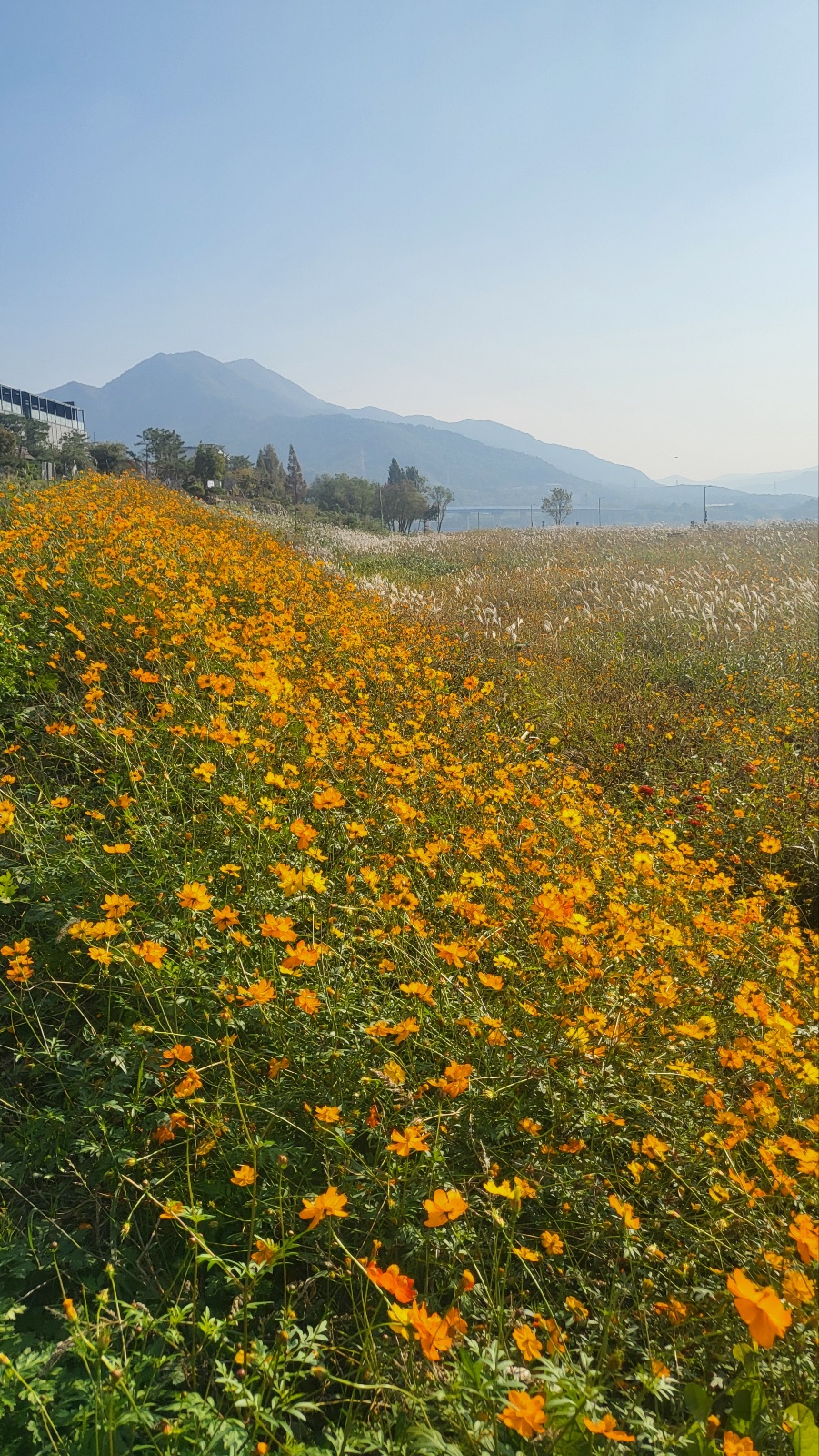 황화코스모스, 한강변의 그림과도 같은 풍경이