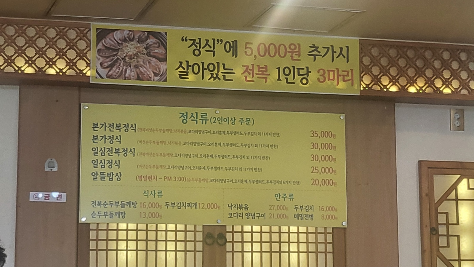 *정식에 5,000원 추가시 완도산 활전복 3마리
