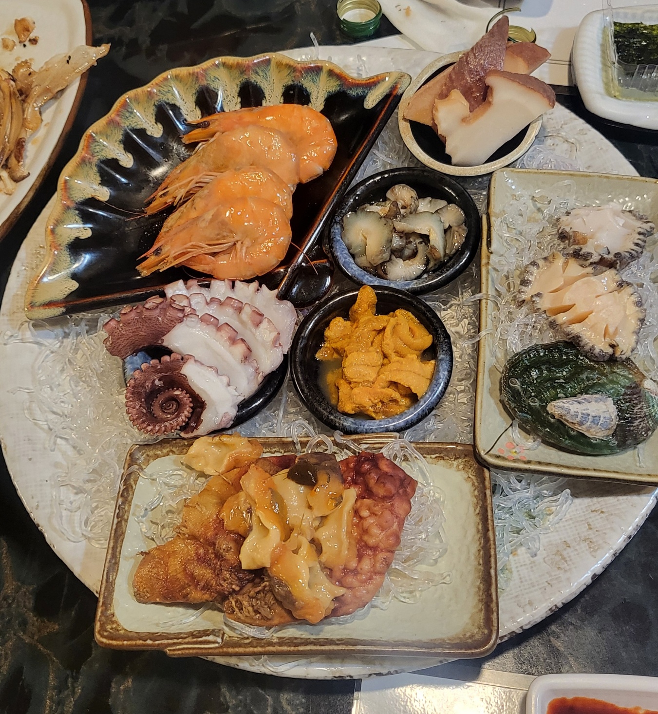 문어와 새우, 멍게, 해삼, 소라, 우니..