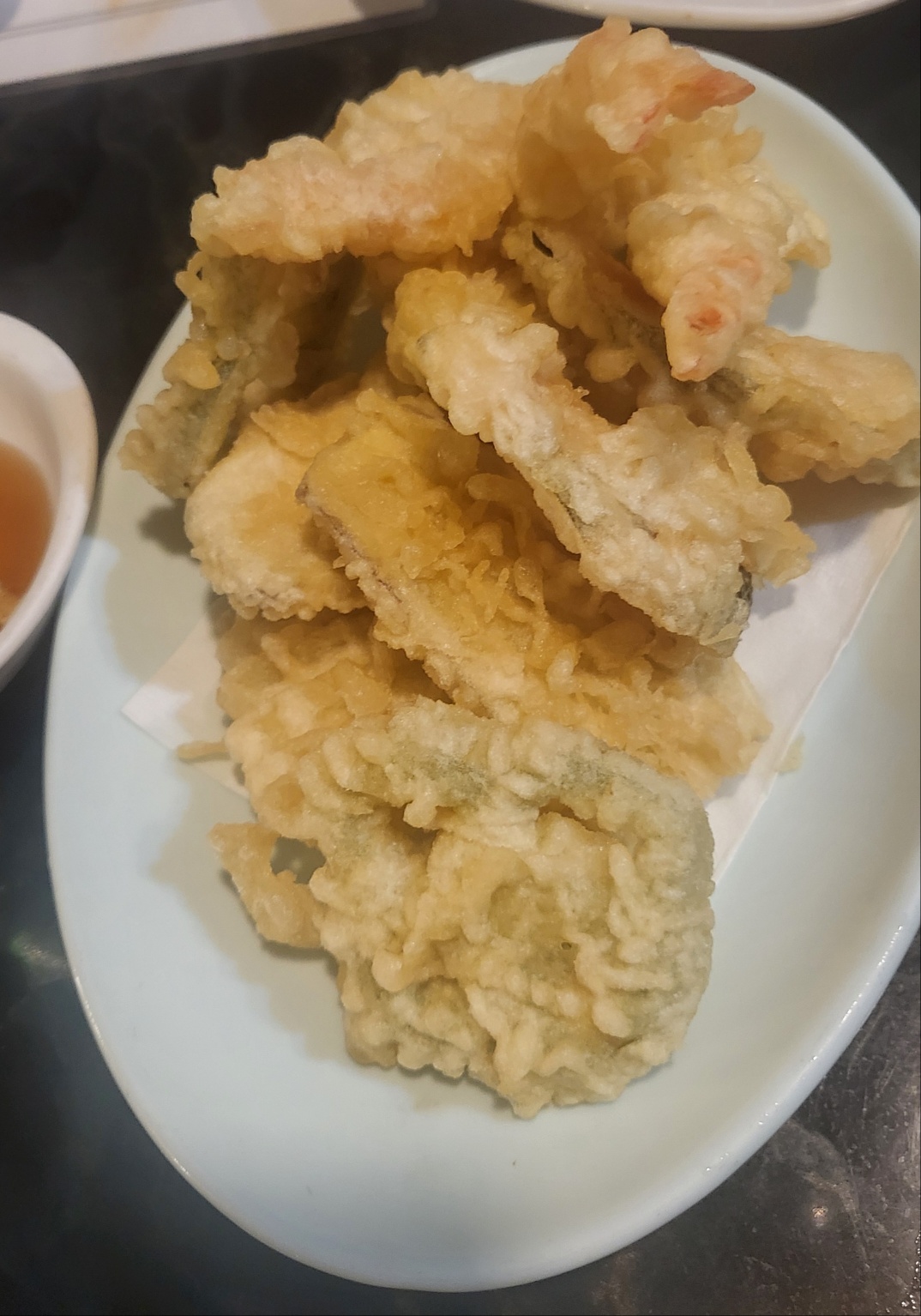 새우튀김,, 호박 튀김, 고구마 튀김, 야채 튀김 등이 나왔다.