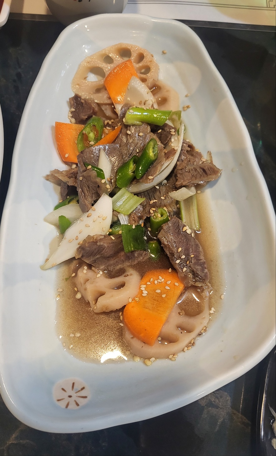 고기와 연근을 함께 볶은 요리가 나왔다.